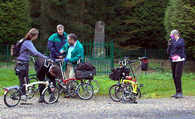 Most of us had a minimal tool kit plus spare tubes - all the bikes had Schraeder valved tubes, though my spares were Prestas, as I prefer these, and will replace the original Schraeders when a puncture requires it. Dave and Susan had the original Brompton pumps - after Susan's puncture they intend to replace these with the far superior Zefal model used on the Mk 3 Bromptons. We had one spare Primo tyre with us for the trip, although we did not take this out on the Saturday and Sunday rides. Apart from teh one puncture, we had no problems of any kind with any of the bikes.