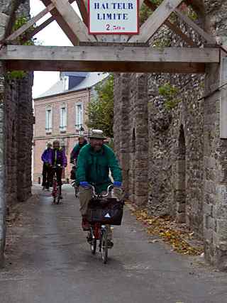 After this excitement we retraced our route a short distance, and then made our way up a steep and rather rough track to the top of the town - all except Dave decided to push rather than ride this section. St Valery is a very attractive town, and we spent an hour or so looking around.