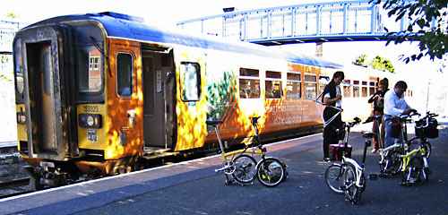 Our return train journey as far as Shrewsbury was problem free, Chris leaving us en route to continue his weeked tour. In the last couple of weeks he has fabricated a rather ingenious front rack which clips onto the standard Brompton block, but allows him to use normal front panniers.