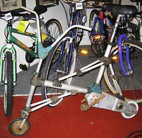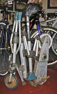 Although we had hoped for rather larger numbers at this event, this was a fair turn out given the location. Quite a lot of people opted to travel by car instead, and a bonus of the different location was that we met some people who do not normally attend our Meriden meetings - Mark and Celeste were particularly welcome after making the long journey from Devon, and it was good to see Jenny and her Bike Friday Gnu - she seems very pleased with it, and after a short trial run on it Celeste seemed to smitten as well! Dick Hanson had travelled from Cheltenham by motor cycle with a number of (motor) biking friends, and they seemed to find the collection just as interesting as the rest of us, and were particularly interested in the small motor cycle section.
