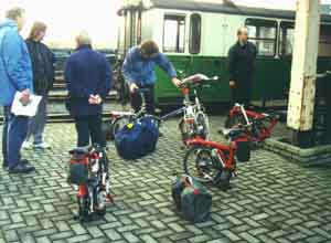 This was a most enjoyable weekend, and despite the poor start the weather was excellent for most of the time. The variety of bikes was rather greater than in past years, as one of the photos shows, although Bromptons were by far the most common machines as usual. The first year I took a Bike Friday, the second year I took a Brompton, and this year it was the Birdy. For the riding I did, and the amount of folding and unfolding involved, the Birdy was the best compromise, and it behaved perfectly throughout the weekend. I took a digital camera with me to produce picutres for these web pages, but in the end all the pictures you see here were shot instead with a Yashica Samurai half frame camera.